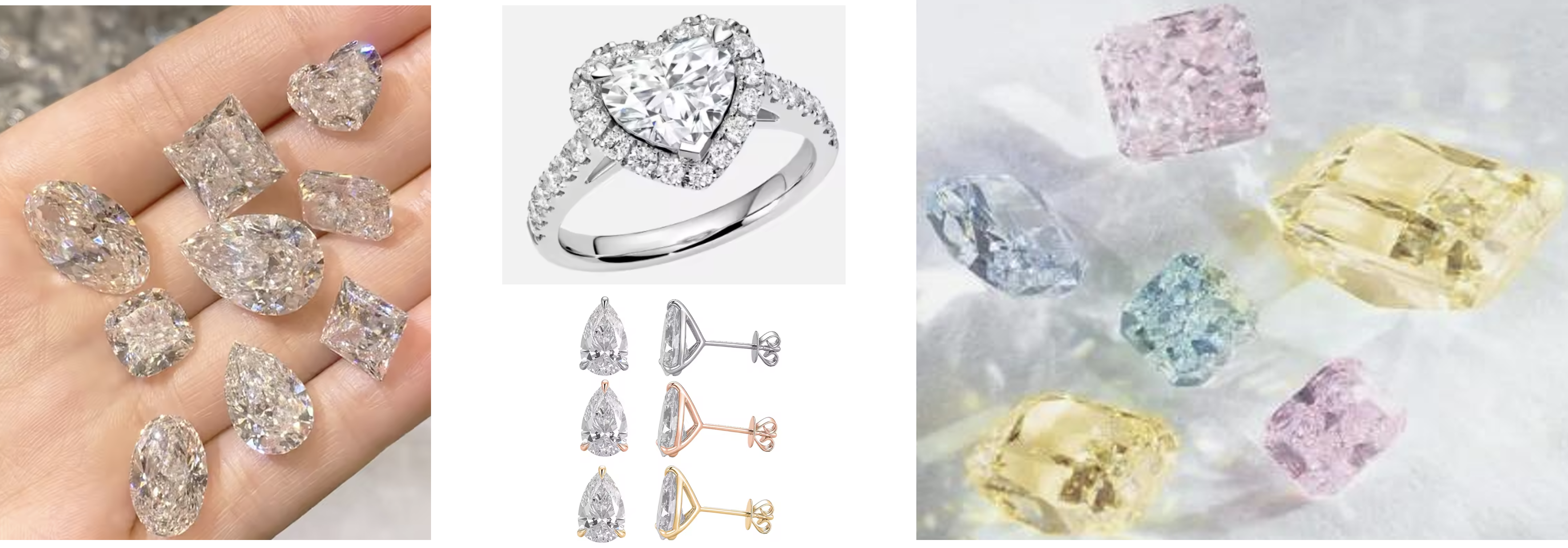 In addition to loose stones, we offer comprehensive jewelry services, allowing for full customization based on your specific requirements and preferences. Furthermore, we can accommodate requests for unique shapes and custom colors. We are particularly proud to offer a variety of colored diamonds, including pink, blue, green, and yellow.