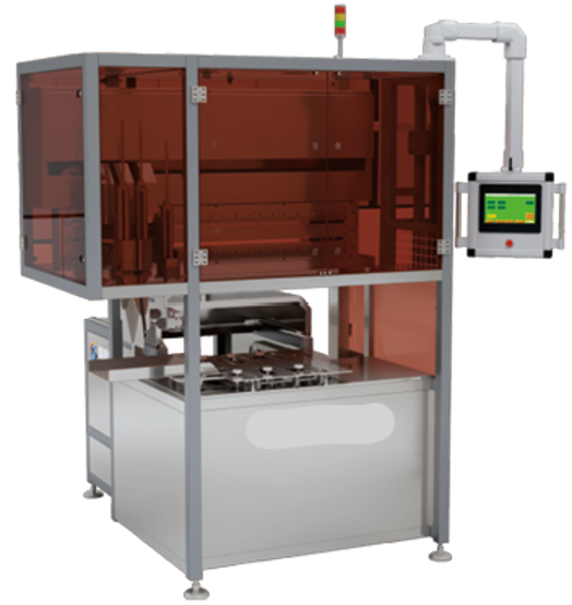 The tray charging machine is used for the automated equipment connection of tray charging of water injection ampoules and vials to stainless steel trays, realizing the cycle of trays from empty trays to full trays.